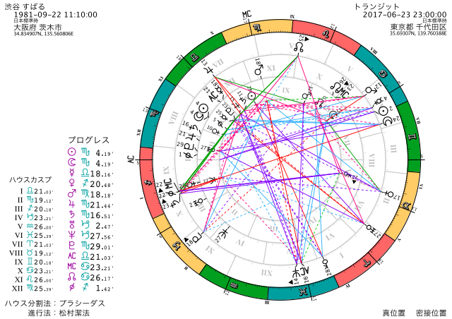 と伺ったので、仮に出生地を茨木市としてホロスコープを出してみました。