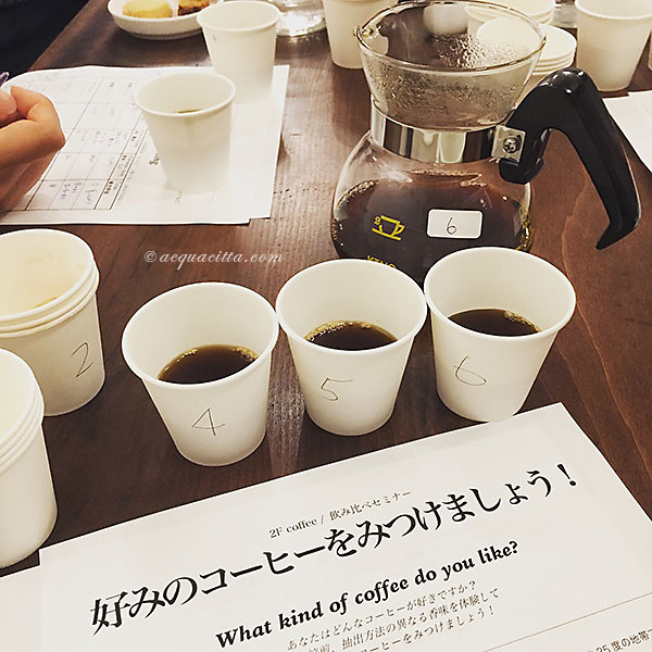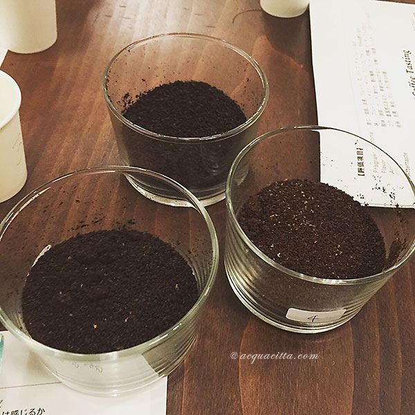 こんな感じで2〜3種類ずつ、産地別、焙煎方法別に味見していきます。