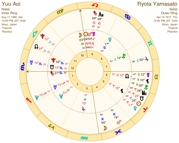 山里さんのほうは、牡羊の太陽に山羊土星、冥王星がスクエアと激しい形で、結婚自体が人生の大勝負に見えました。
