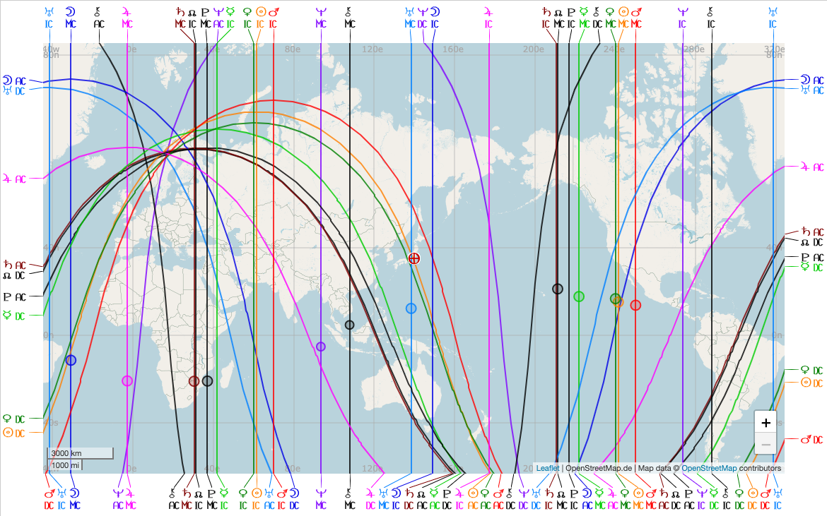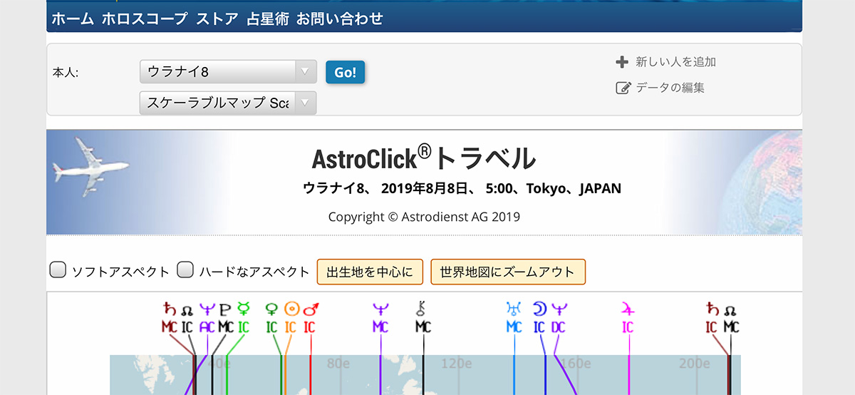 アストロマップはその人のホロスコープを地図に重ねたものです。