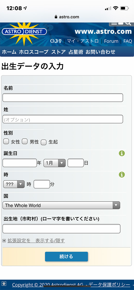 性別は男女どちらかにしないと、アストロマップは出せないようです。