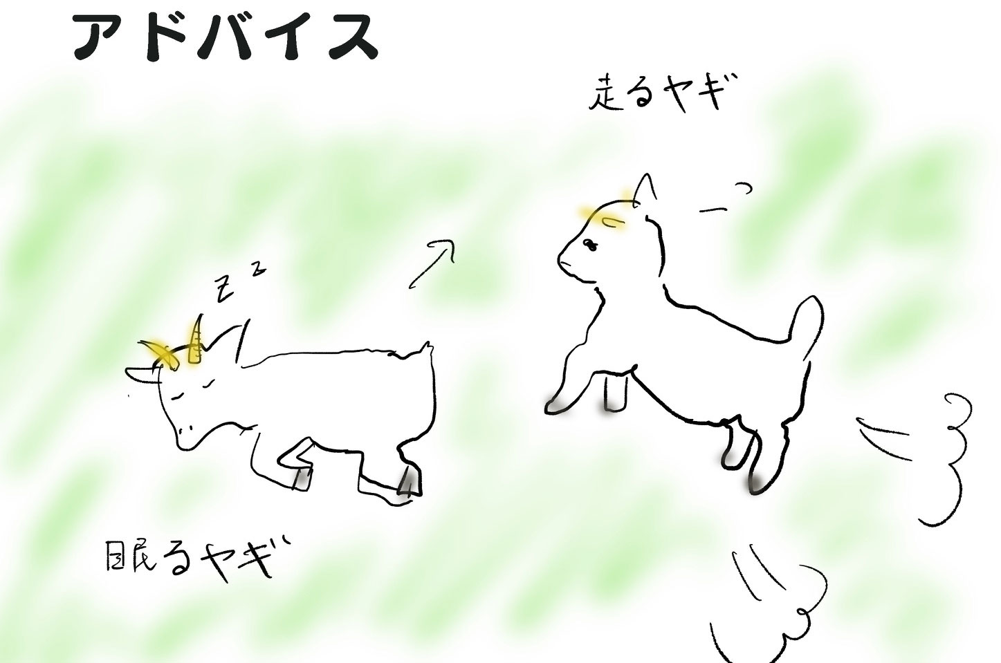 気持ちよさそうに寝ている山羊が、目覚ましに起こされてしぶしぶ起きて走り始めました。