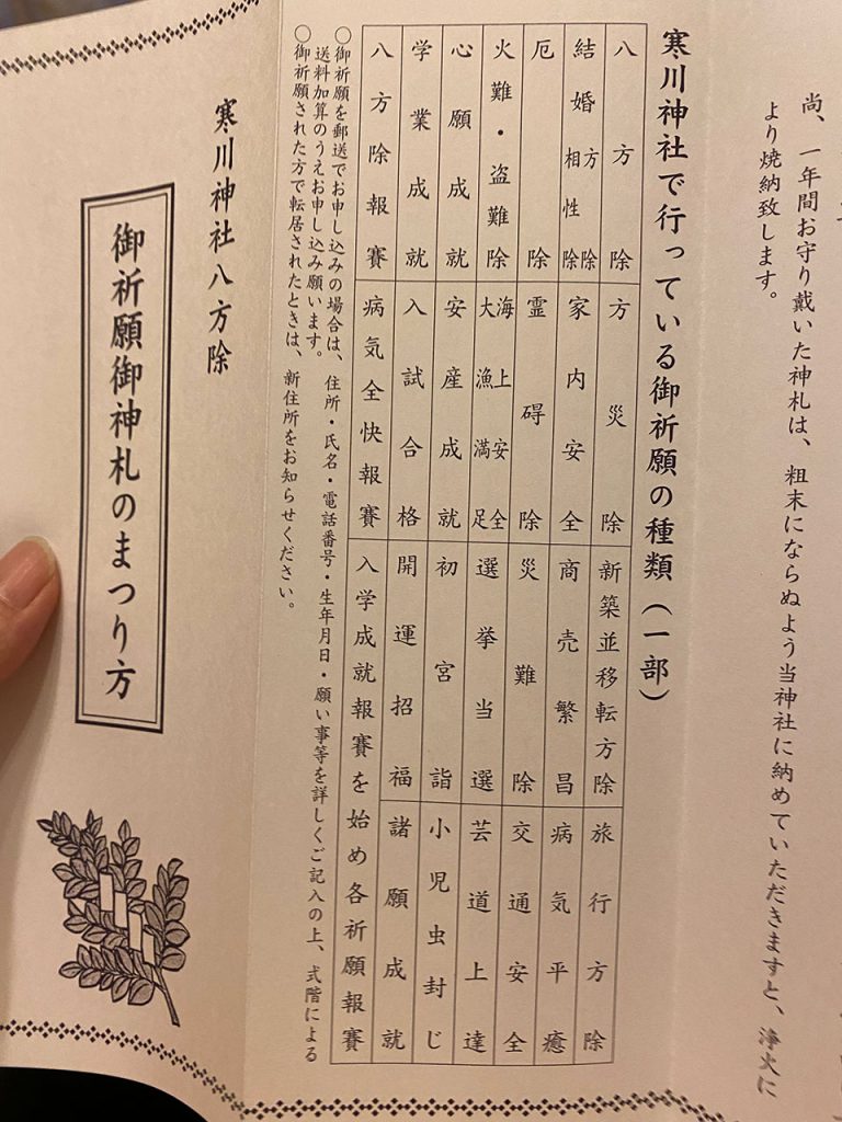 ということで、今回はお参りだけでなく八方除をしていただくことに。