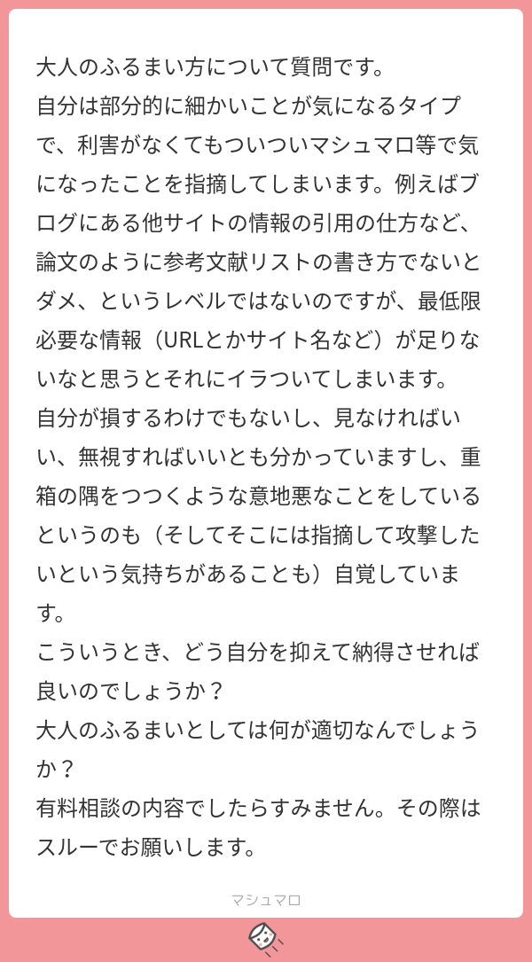 指摘したらどうなる?とか、なぜ指摘したいのか?とか、イライラを鎮めるには?などの質問で引いてみましょう。