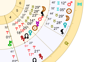 図を見ていただくと太陽がそばにありますが、プログレスの新月直前ですね。