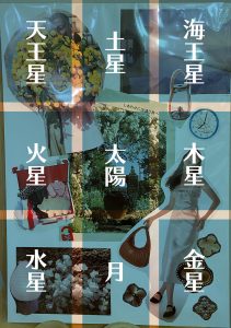 最後、土星のエリアにいいのがなくて、赤いテキスタイルを置きました。