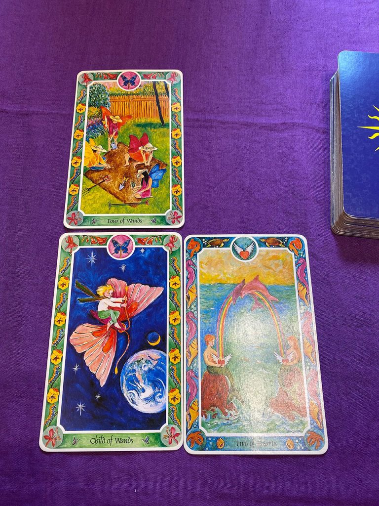 タロットでいうと上がワンド4、左下がワンドペイジ、右下がカップ2ですね。