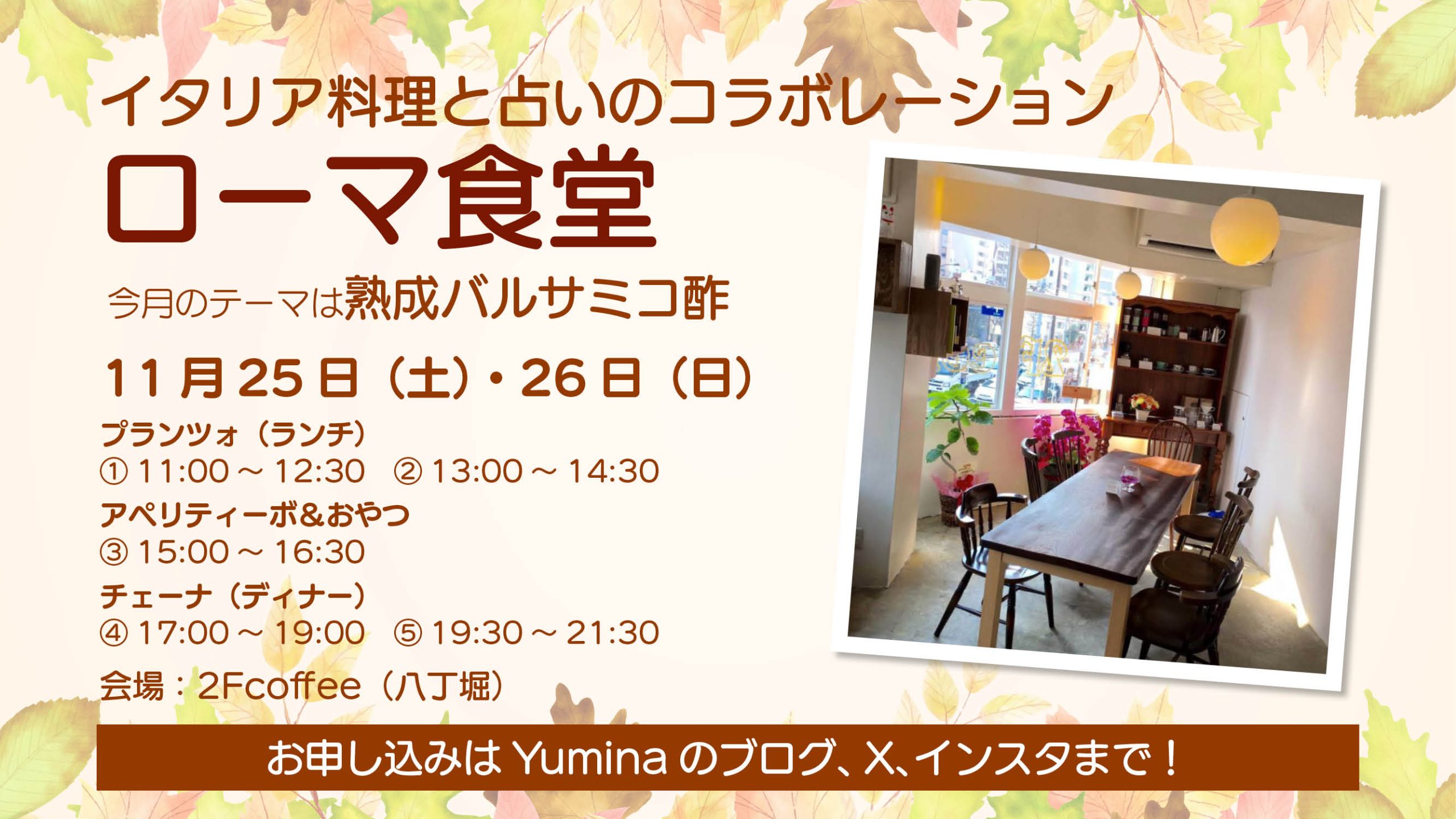 また、12月23日土曜日のチェーナ(ディナー)タイムは、占いをお休みさせていただきます。