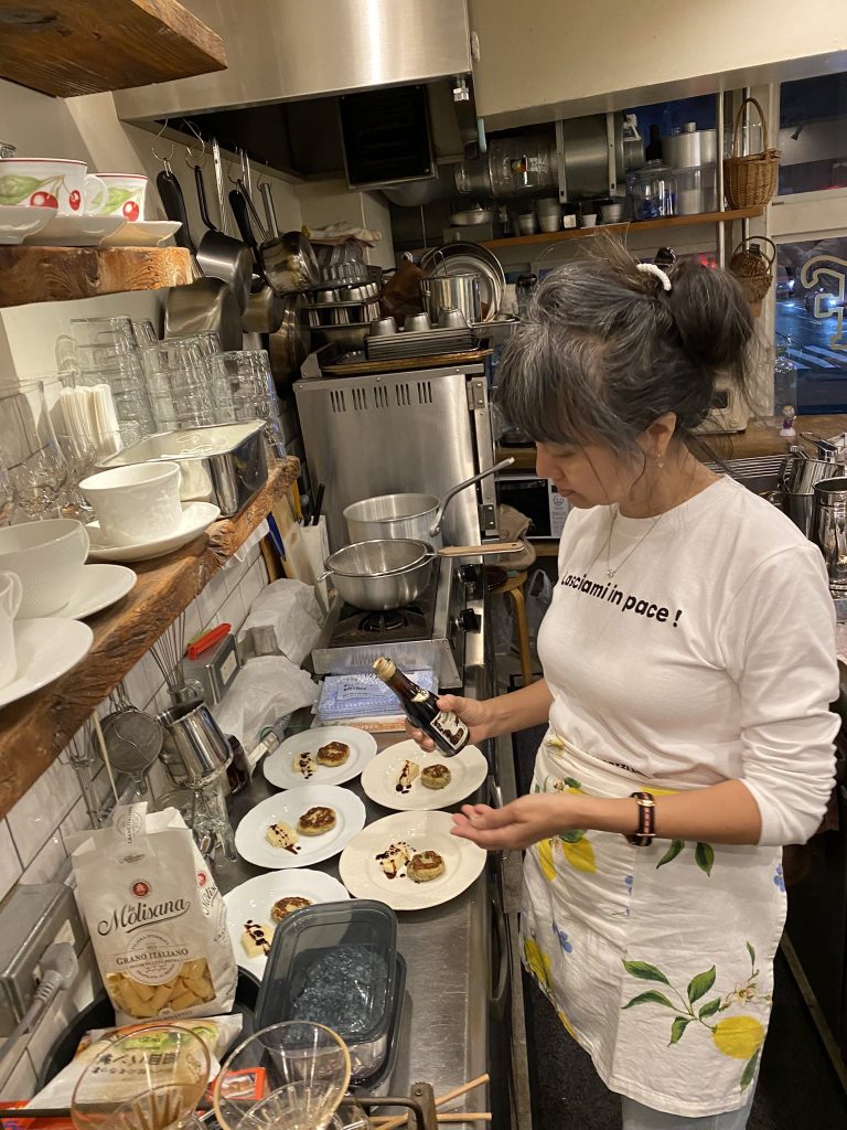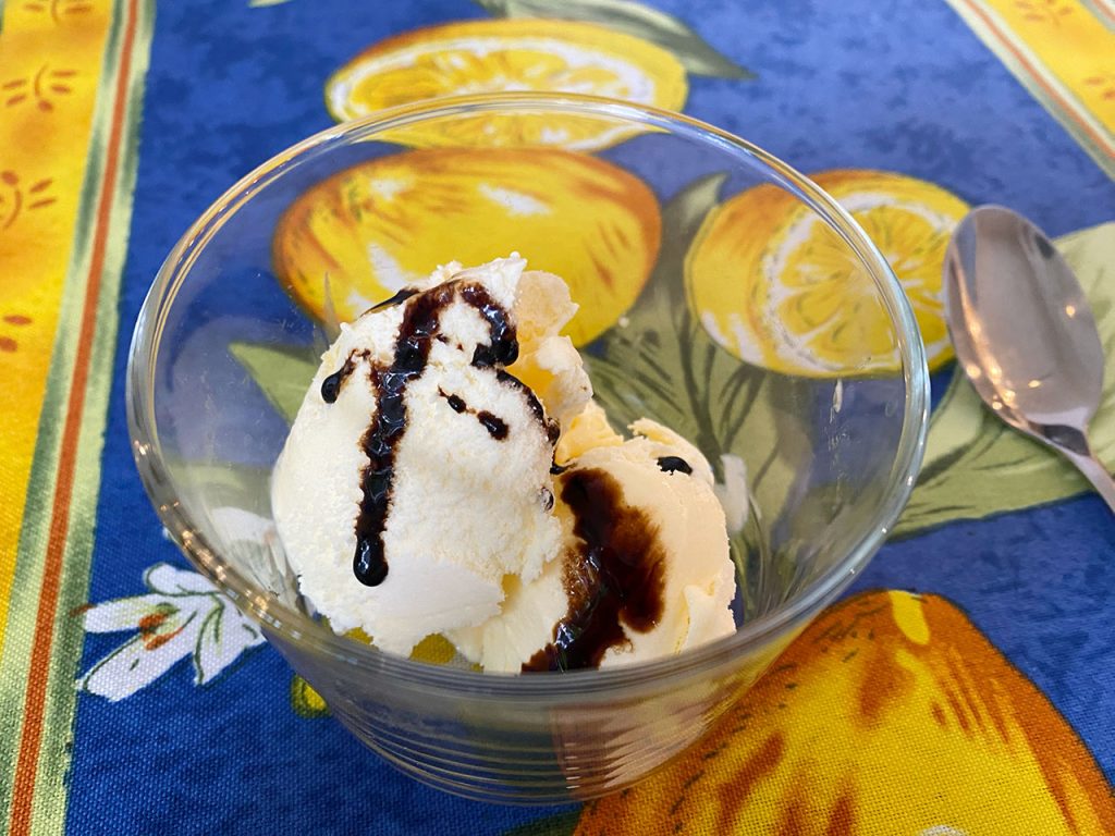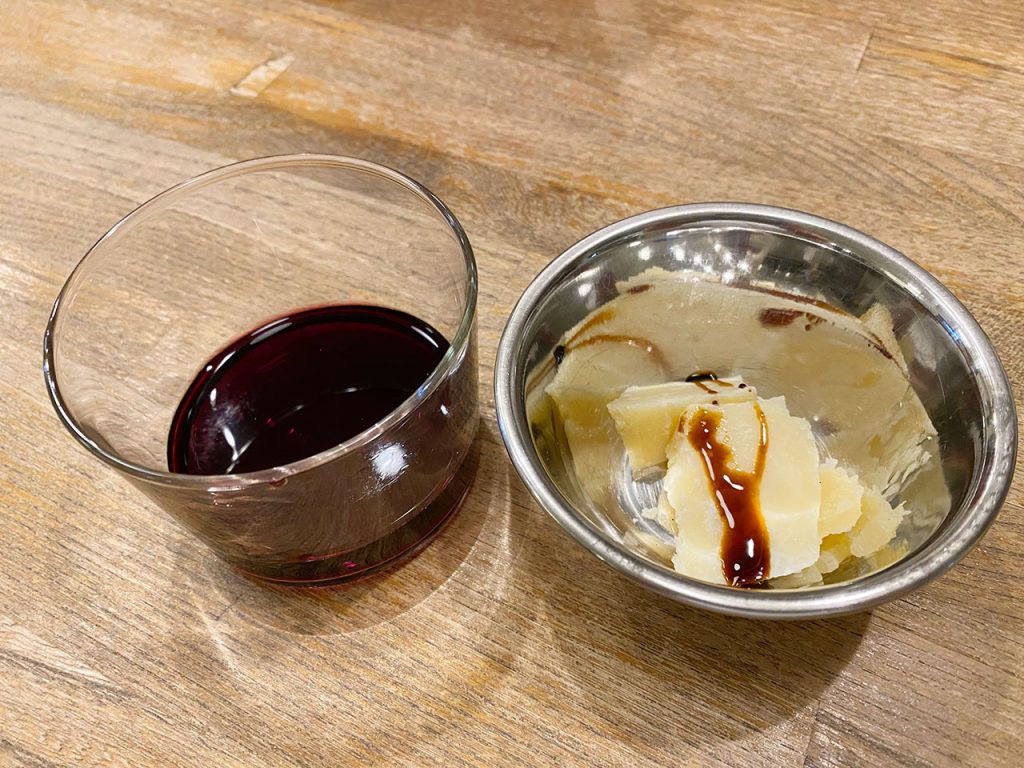 11月のテーマがバルサミコ酢!前菜の茄子の何かが美味しかった。チーズにバルサミコ酢、デザートのバニラのは25年もの!