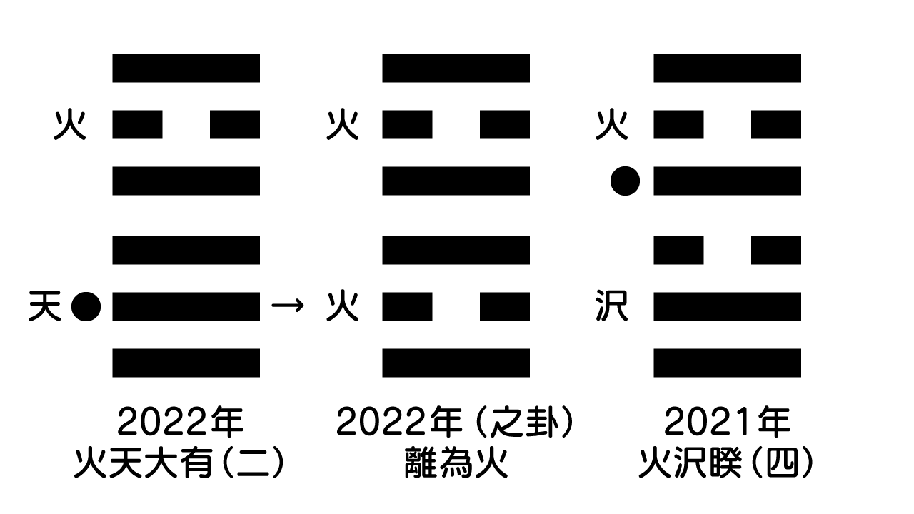 2022年 火天大有(かてんたいゆう) 二爻 之卦は離為火