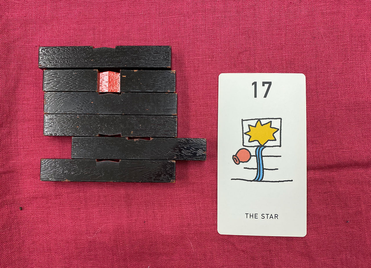 私の年筮は山地剝の三爻でした。(算木の写真撮り忘れ💦)順番ぎめで引いたタロットは世界。