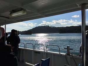 その後は五大堂という小島の上に建てられた仏堂をちょろっとまわって、いよいよ松島観光船へ。きっぷ売り場のお兄さんがとても親切で、「電車で帰るなら塩竈行きに乗ると便利ですよ」とのこと。東塩竈までは電車の本数が多いのですが、その先は1時間に2本くらいしかないんですよね。