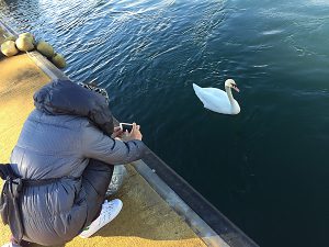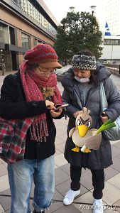 玉紀先生にポケモンGO指導を受けるまつい先生。カモネギゲットー! 何やらうるわしい光景です。