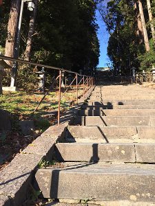 当然、202段の急な階段のある表参道だ! と燃える玉紀先生。(ダレカトメテ〜)