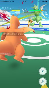 早速ジムで戦う! 手前が私の、奥が玉紀先生のカイリュー。平日の早朝から何をしているのか私たちは…。いや、我に返ったら負けだ! おバカをやる時は徹底的にやるのだ! うおおおお!(小学生男子並)