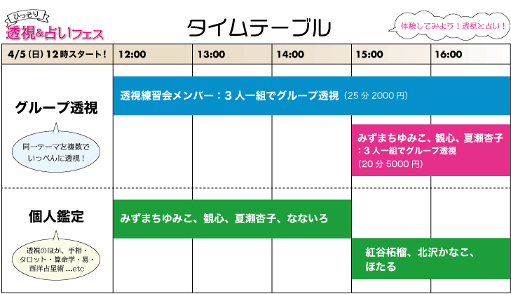 グループ透視のコーナーと、個人鑑定のコーナーがあります。