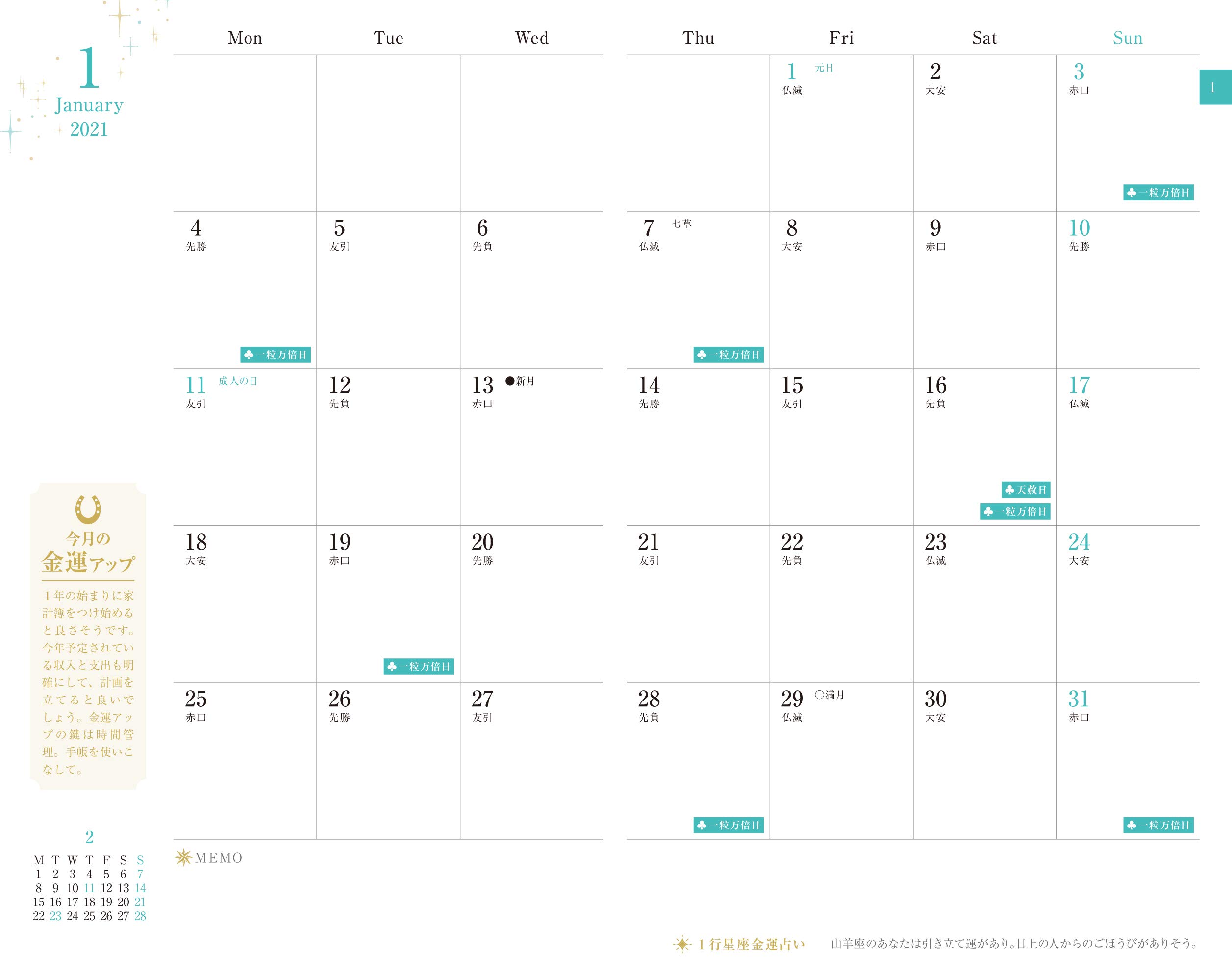 また、マンスリーページには一粒万倍日や新月満月の記載もありましたよ。
